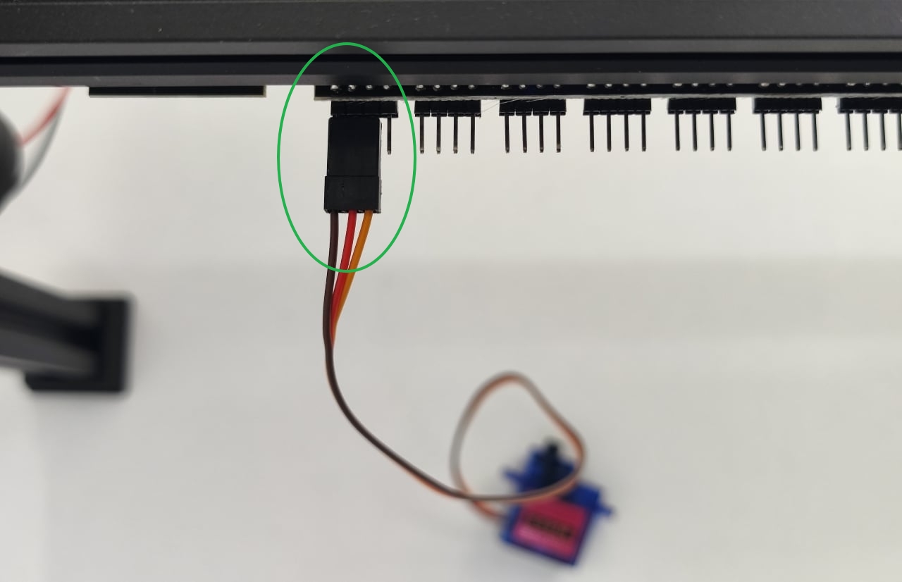 Secure the servo wire into the designated slot and install the servo 3P connector into the mounting slot. Pay attention to the wire sequence.