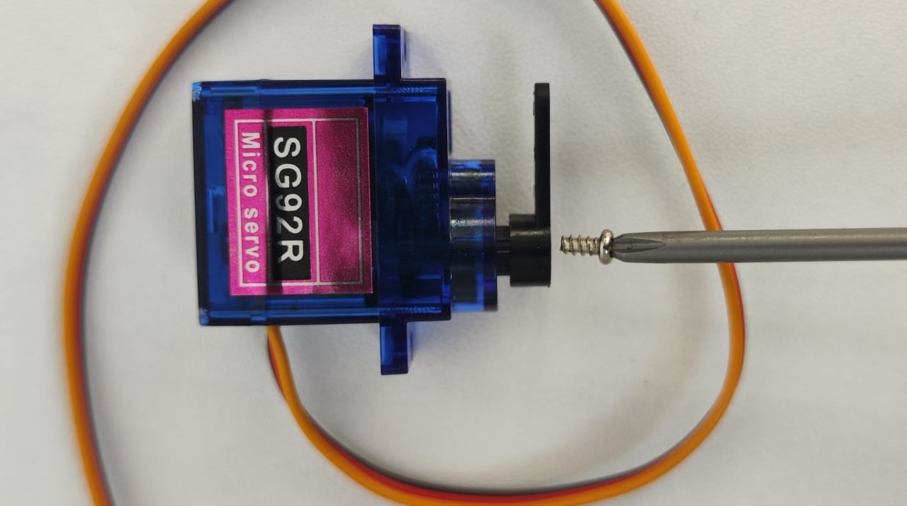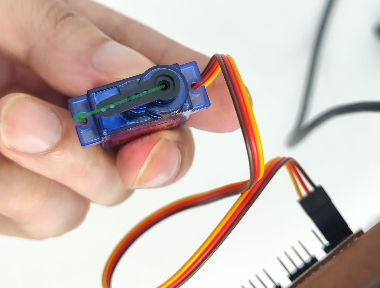 Adjust the servo to the 180° position, then we can properly install the arm.