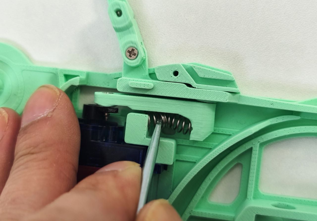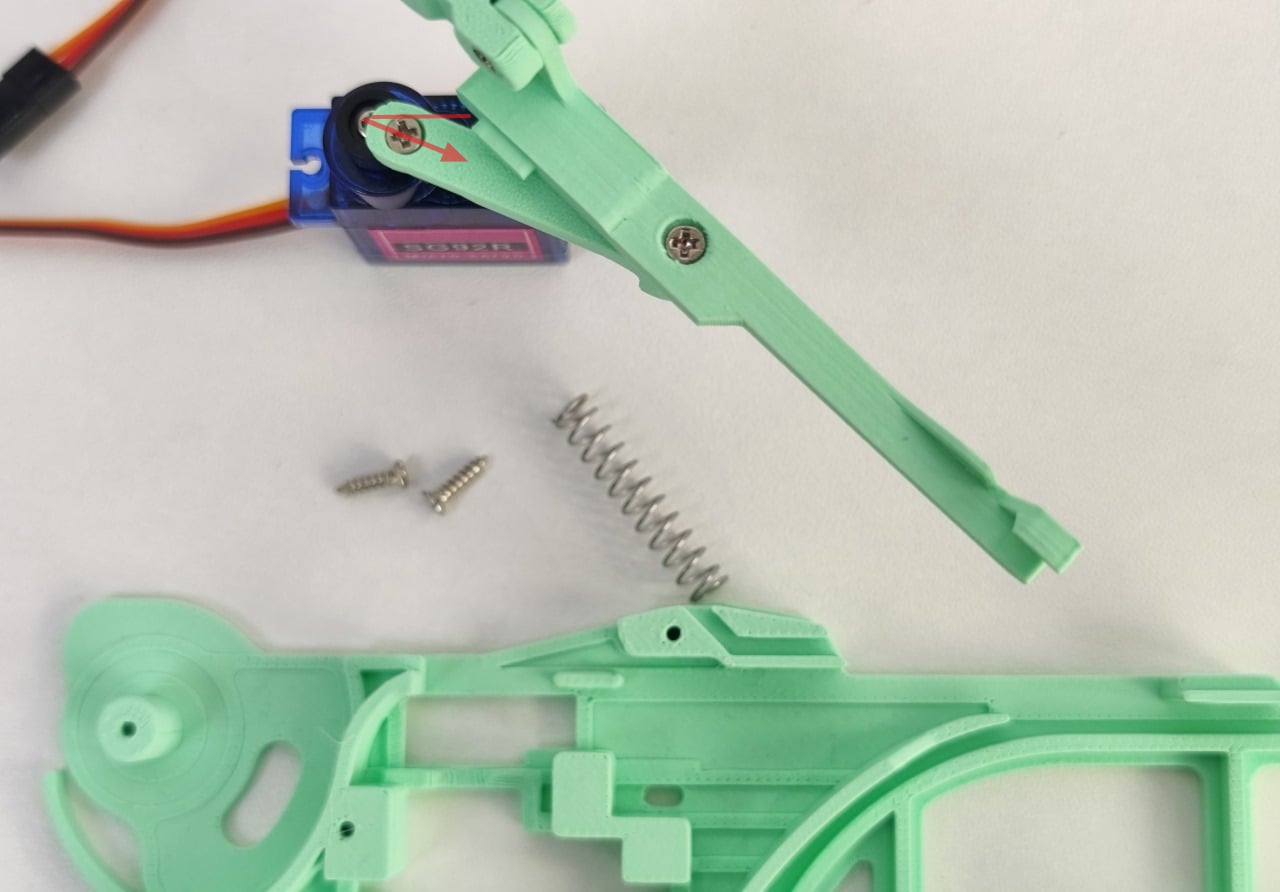 Note: If the servo you are using is of poor quality or cannot provide sufficient output torque, you may also try omitting the spring.