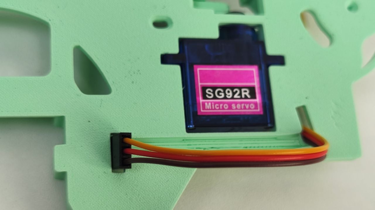 Next, route the servo wire and connector through the back of the base and secure them in the designated mounting locations.