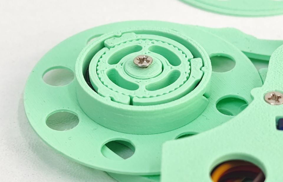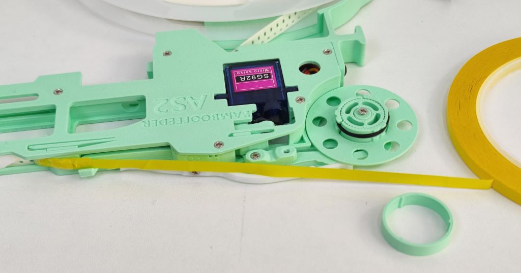 If insufficient friction at the tail end makes it difficult to remove the cover tape effectively, continue increasing the number of O-rings. You may also consider replacing the printing material for these cover tape spool parts to increase friction, the reference model above uses matte PLA.