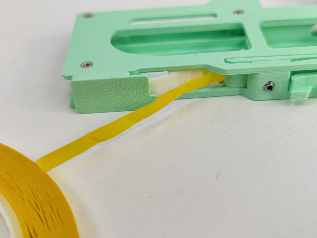 When applying the yellow tape to cover tape, ensure the adhesive side faces downward.
