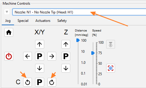 - Ctrl+/, Ctrl+': Jog the currently selected Nozzle down and up in Z.