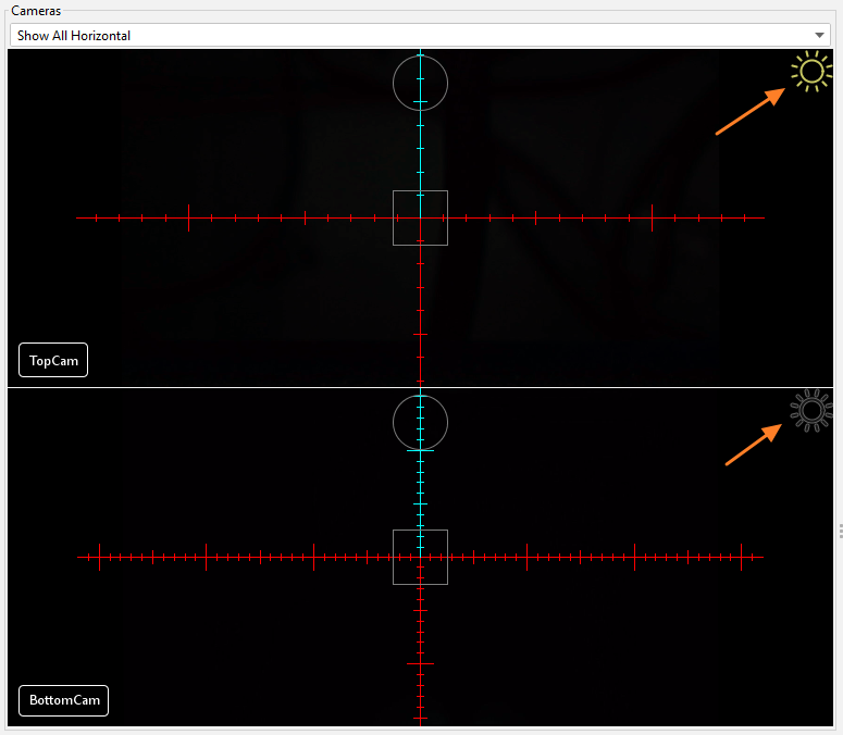 The Device Settings panel in the Machine Setup section for the respective camera must be configured and the exposure value adjusted accordingly.