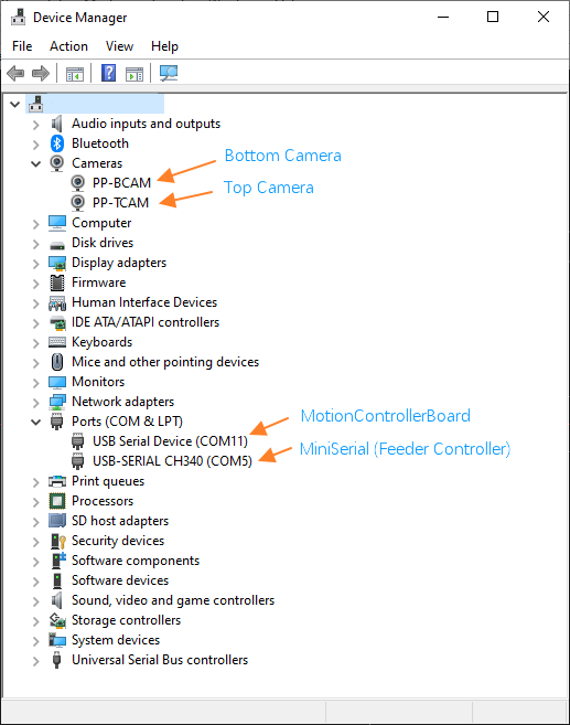 COM11port and the feeder controller uses theCOM5port.- For MacOS: the motion controller uses the