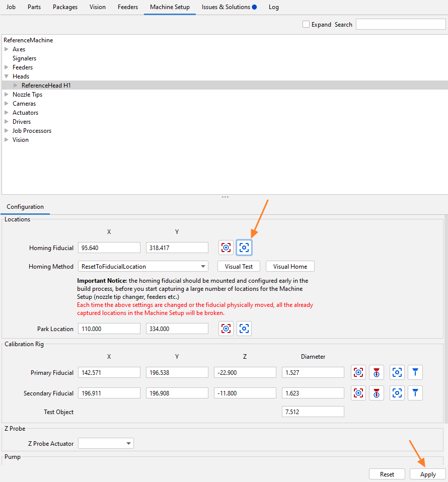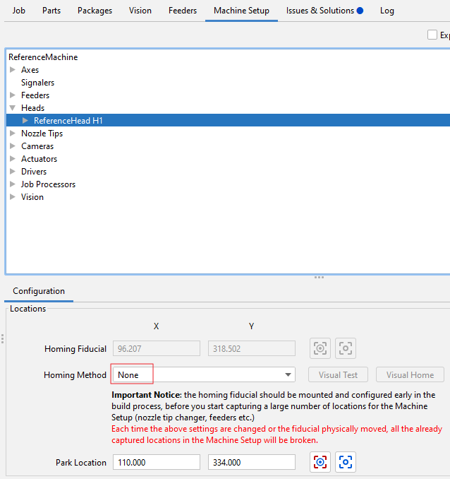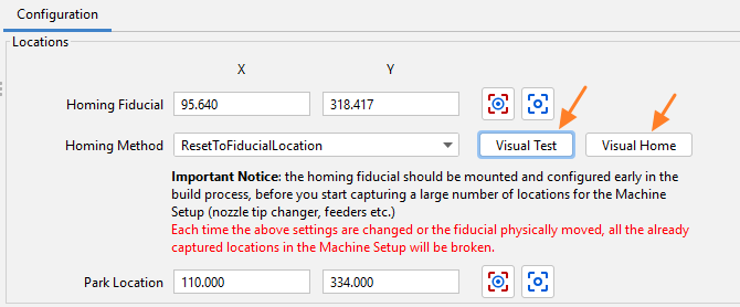 Now the X Y coordinates of Homing Fiducial are in the editable state.