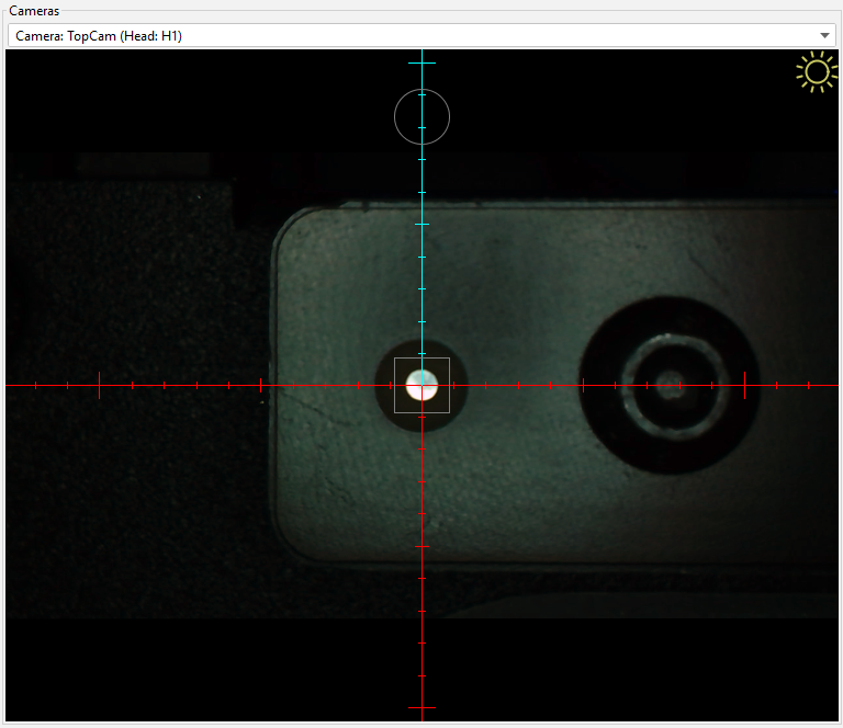 Use the buttons on the Jog tab to move the Top Camera to the top of the fiducial point on Fiducial Home Board. Manually turn on the TopCam backlight if necessary.