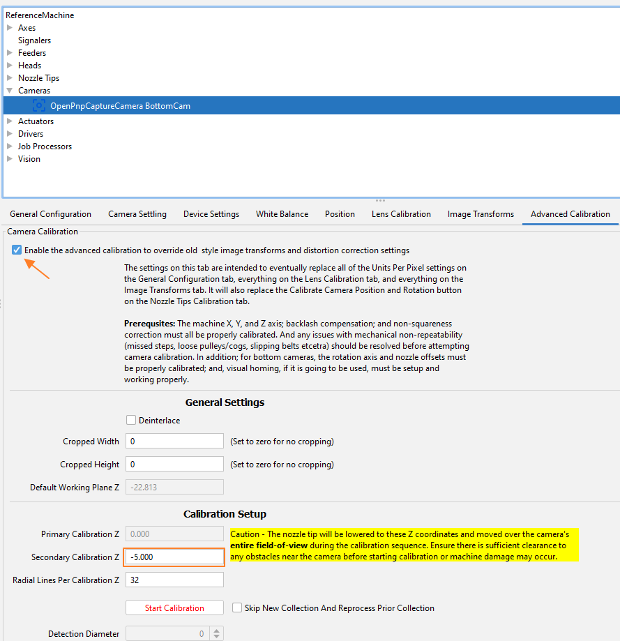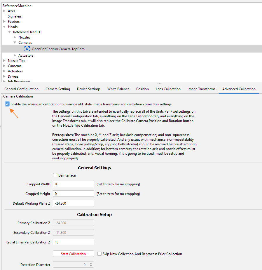 Machine Setup > Heads > Cameras > TopCam > Advanced Calibration