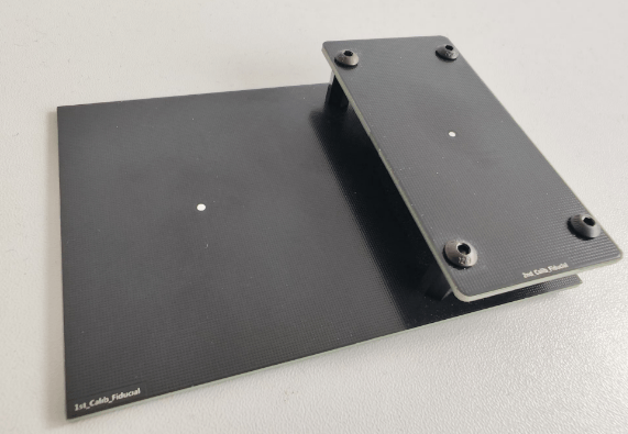 Mount the 1st_calib_board and 2nd_calib_board PCB boards together using 4 * M3X6 screws, ensuring both white dots face upward. These two white dots are used for TopCam recognition at different heights.