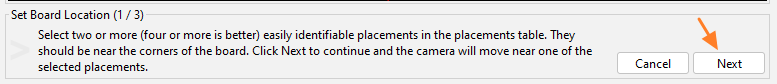 Click the Capture Camera button, set the board location to the current Top Camera position.
