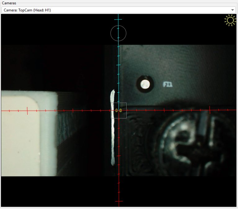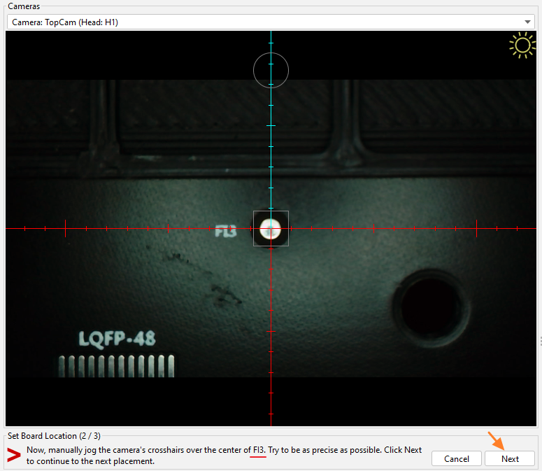 Follow the software instructions to manually move the center of the TopCam view to align the center of the corresponding components one by one.